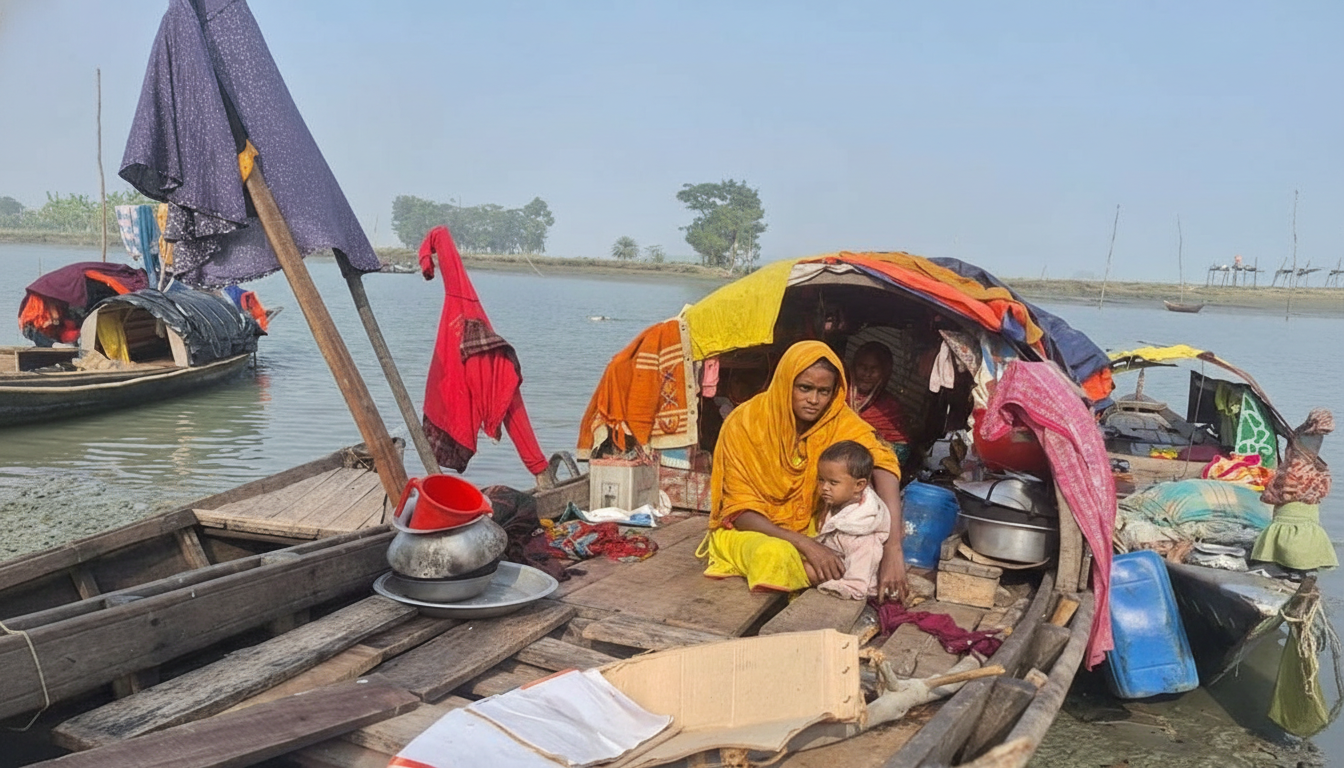 বরিশাল, ৭ ফেব্রুয়ারি – আড়িয়াল খাঁ নদের বুকে ভাটার টানে ভেসে থাকা নৌকাগুলো দূর থেকে দেখলে মনে হয় যেন এক একটি ভাসমান পাড়া। বরিশালের মুলাদির পাশ দিয়ে বয়ে যাওয়া এই নদে মান্তা সম্প্রদায়ের মানুষেরা নৌকায় গা ঘেঁষে বসবাস করেন।