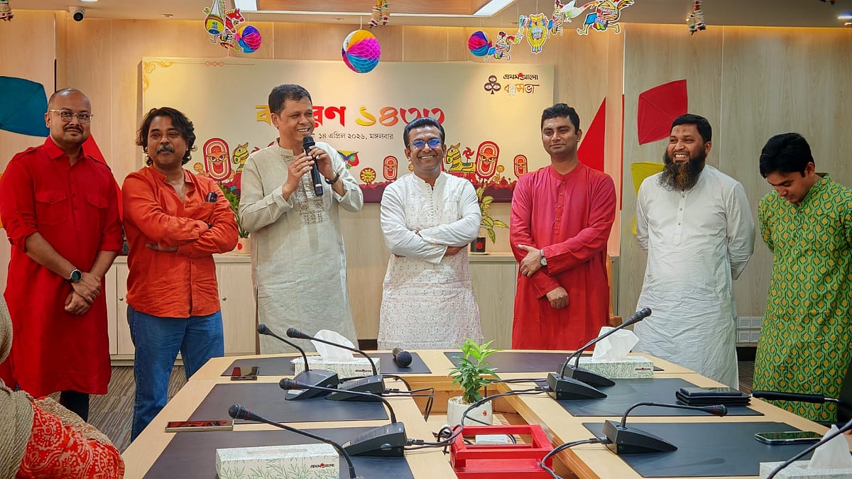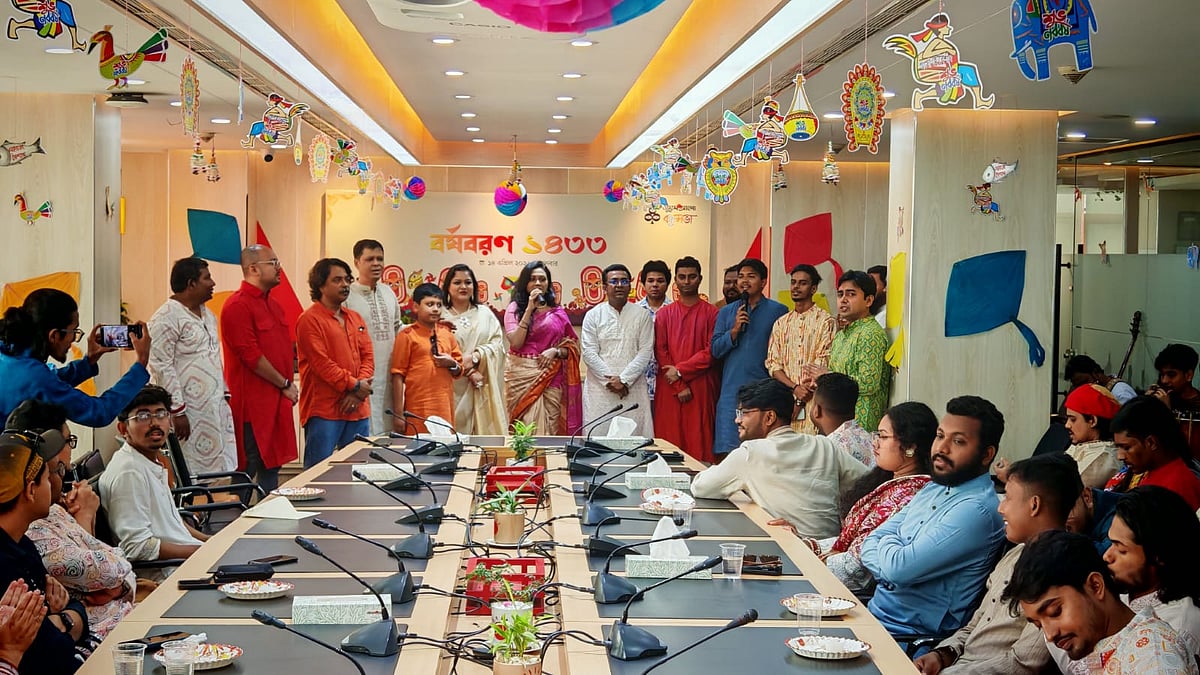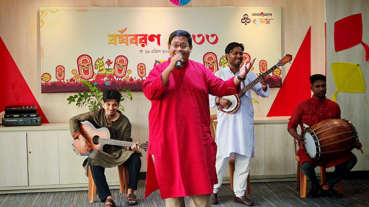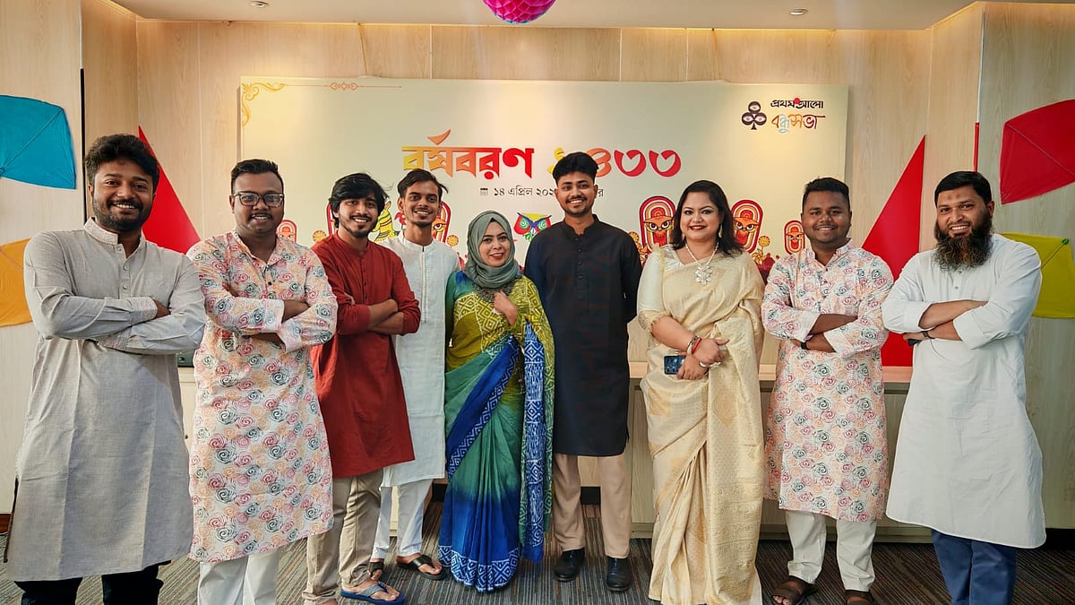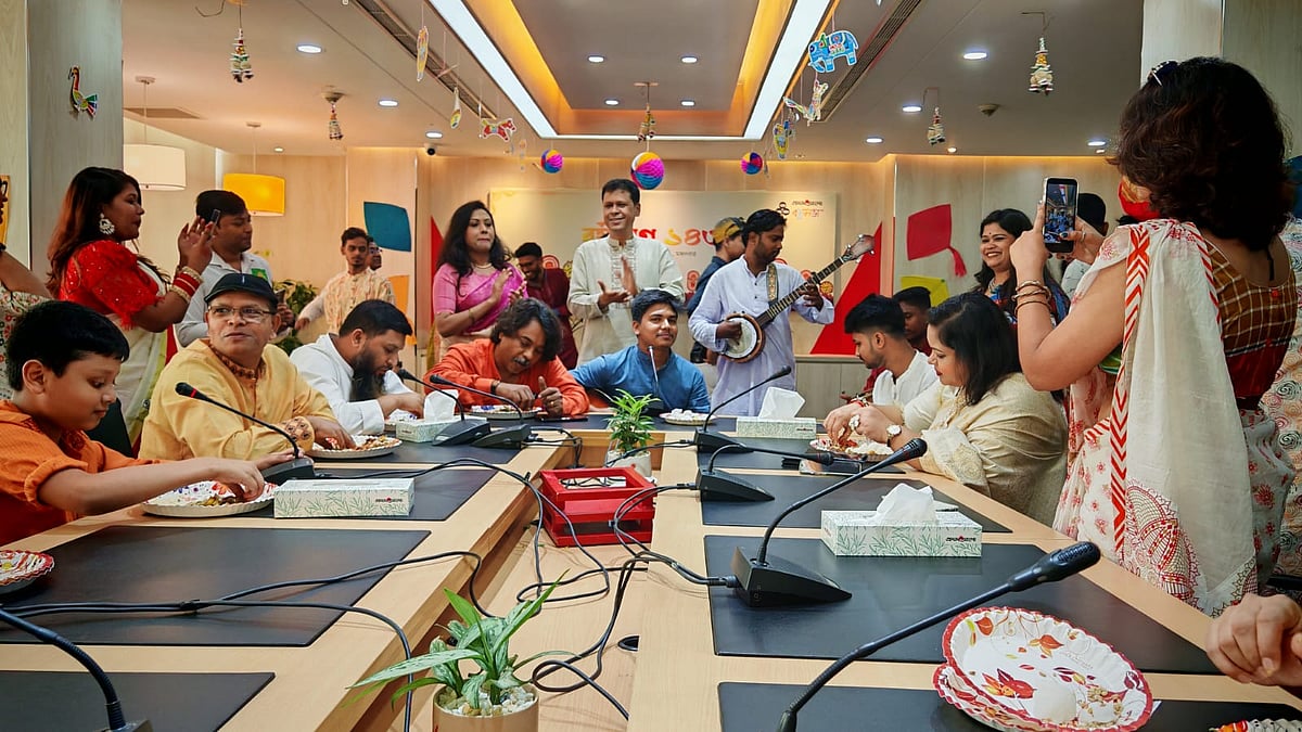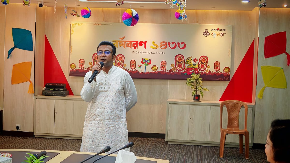 ১৪ এপ্রিল (মঙ্গলবার) পয়লা বৈশাখে বাংলা নববর্ষ ১৪৩৩ উদ্যাপন করে প্রথম আলো বন্ধুসভা। রাজধানীর কারওয়ান বাজারে প্রথম আলো কার্যালয়ের সভাকক্ষে এই উৎসব অনুষ্ঠিত হয়। ছবি তুলেছেন ঢাকা মহানগর বন্ধুসভার বন্ধু তানভীর হাসান।