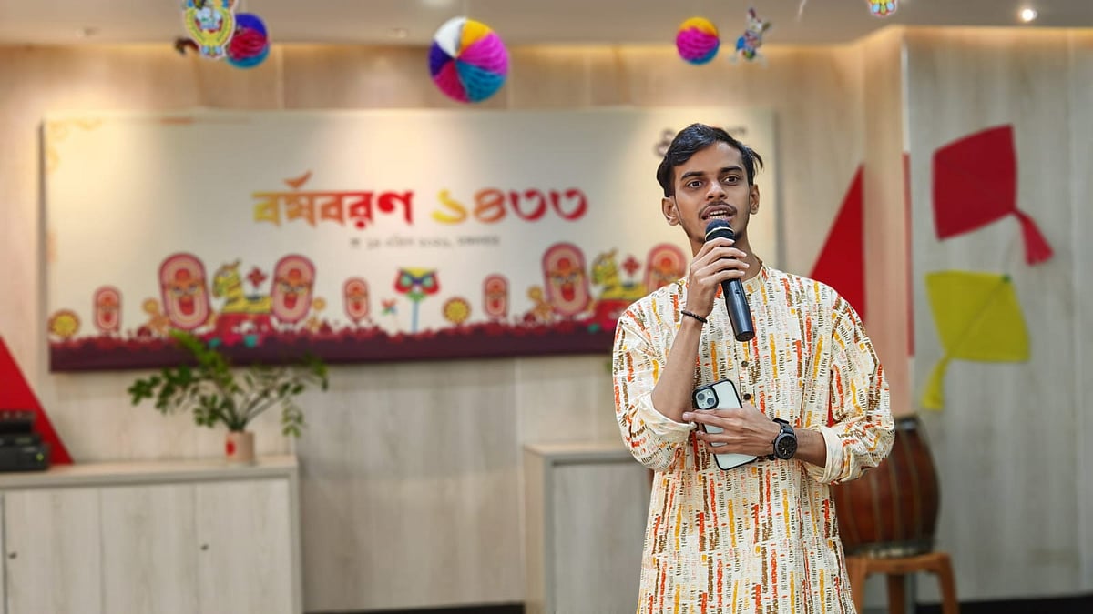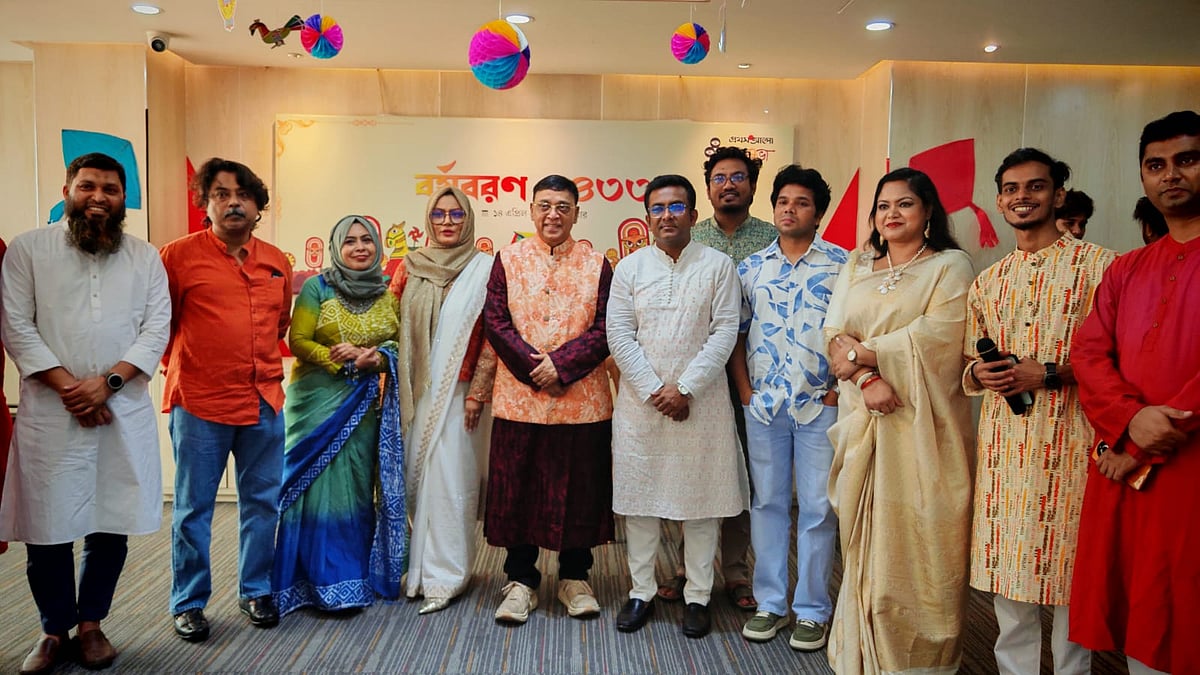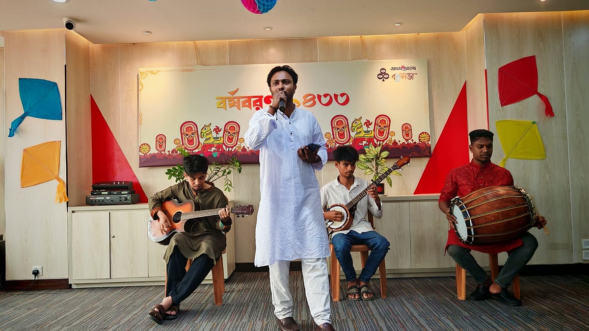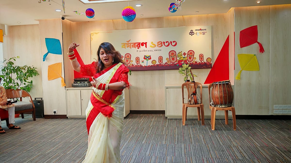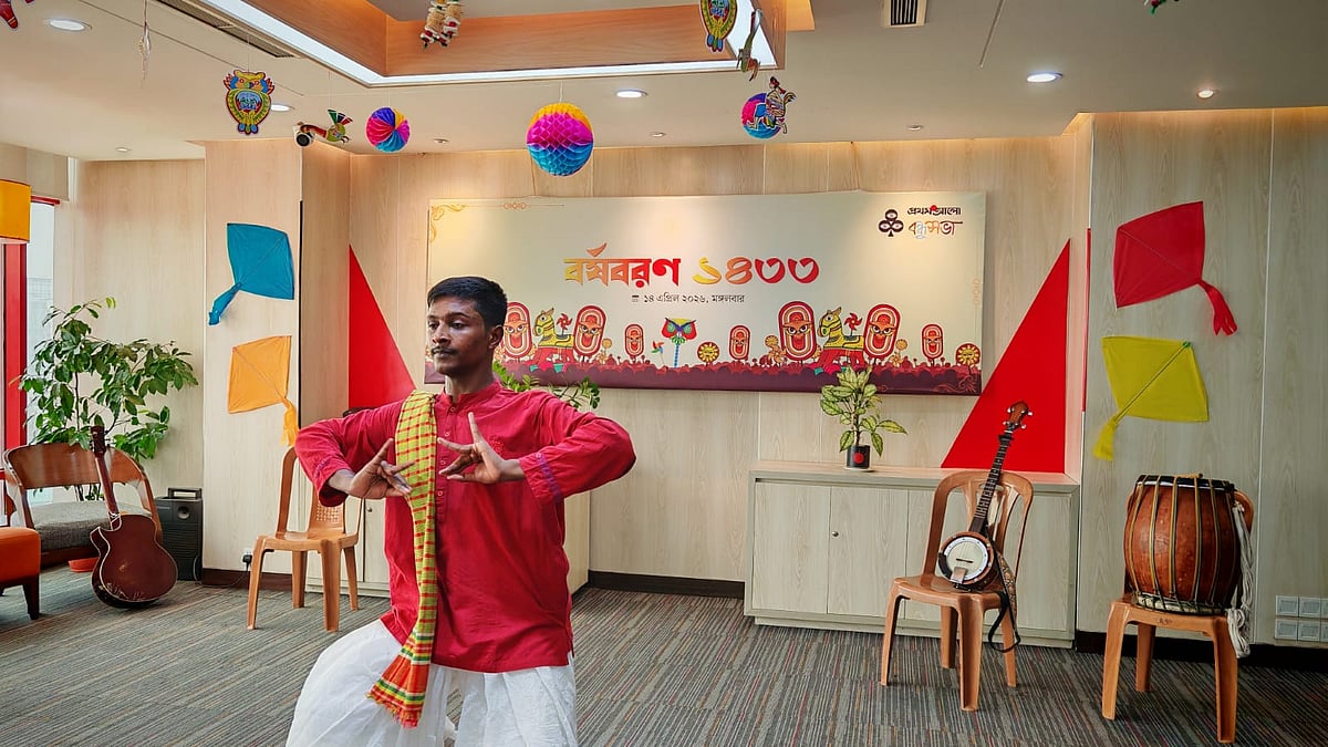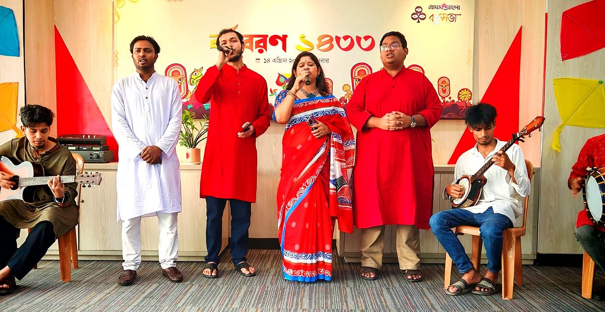 ১৪ এপ্রিল (মঙ্গলবার) পয়লা বৈশাখে বাংলা নববর্ষ ১৪৩৩ উদ্যাপন করে প্রথম আলো বন্ধুসভা। রাজধানীর কারওয়ান বাজারে প্রথম আলো কার্যালয়ের সভাকক্ষে এই উৎসব অনুষ্ঠিত হয়। ছবি তুলেছেন ঢাকা মহানগর বন্ধুসভার বন্ধু তানভীর হাসান।