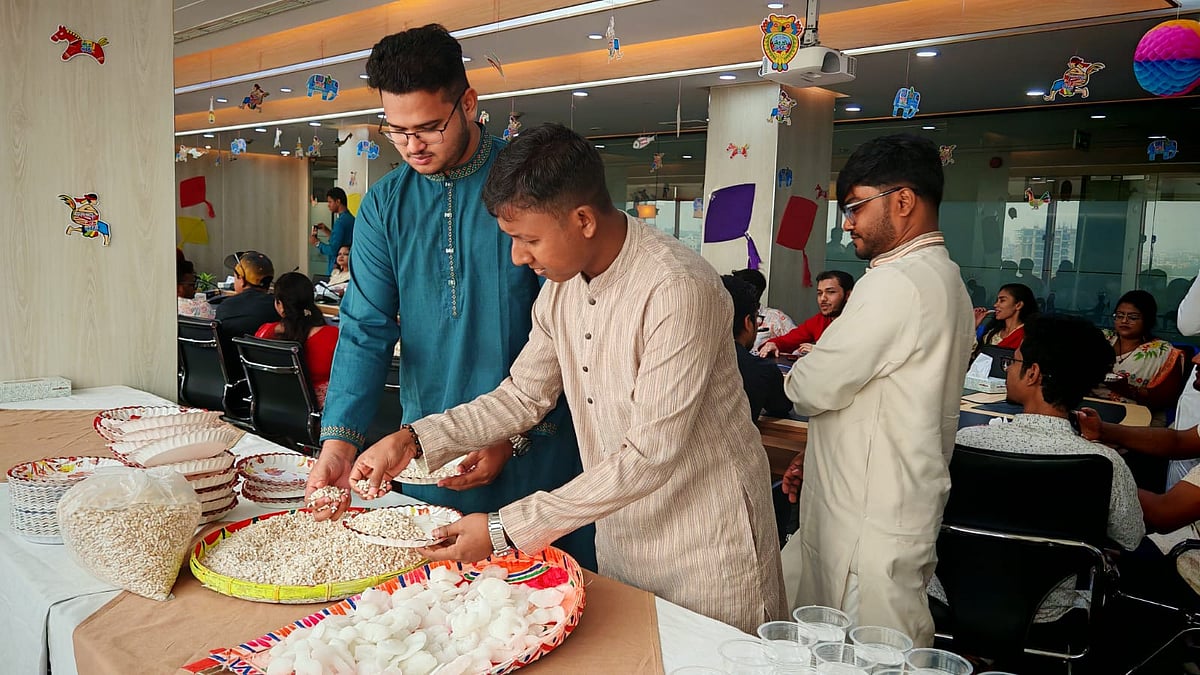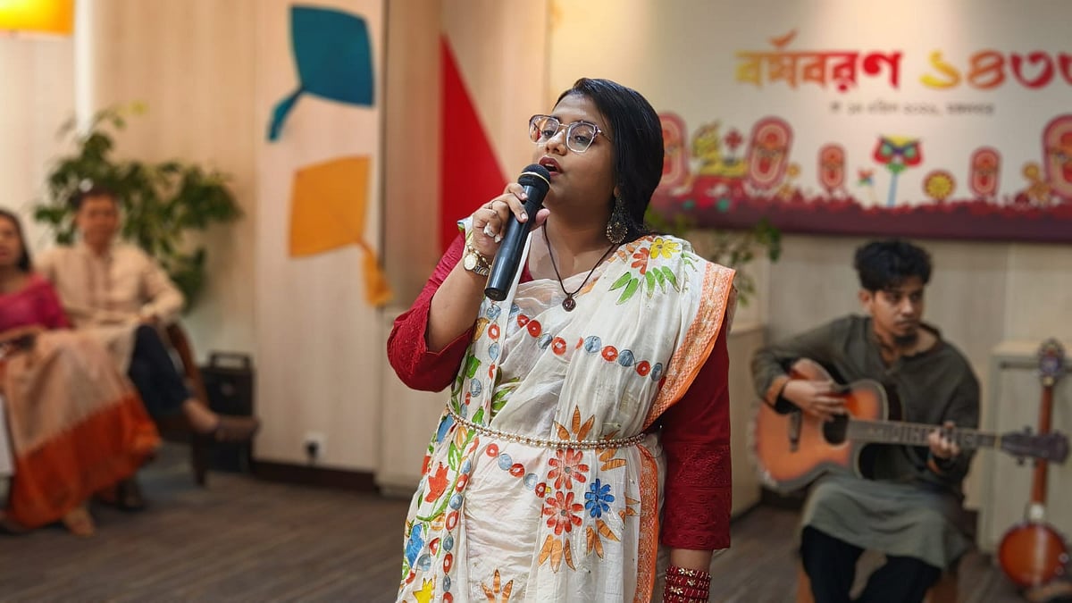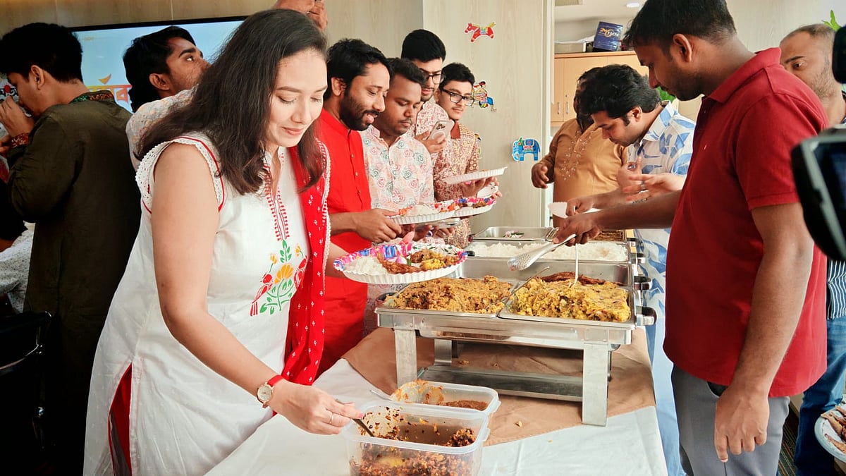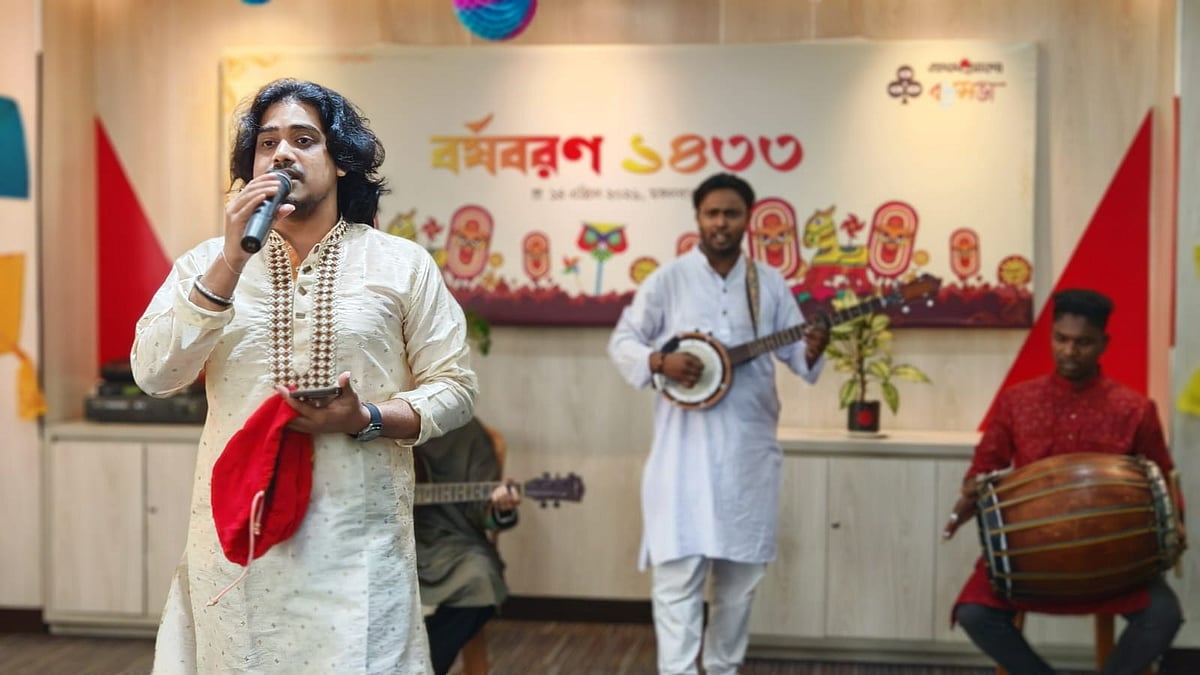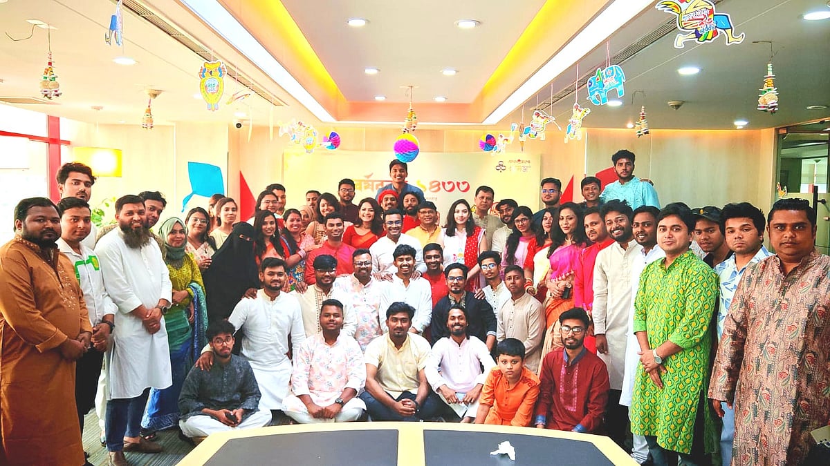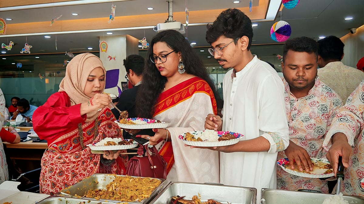 ১৪ এপ্রিল (মঙ্গলবার) পয়লা বৈশাখে বাংলা নববর্ষ ১৪৩৩ উদ্যাপন করে প্রথম আলো বন্ধুসভা। রাজধানীর কারওয়ান বাজারে প্রথম আলো কার্যালয়ের সভাকক্ষে এই উৎসব অনুষ্ঠিত হয়। ছবি তুলেছেন ঢাকা মহানগর বন্ধুসভার বন্ধু তানভীর হাসান।