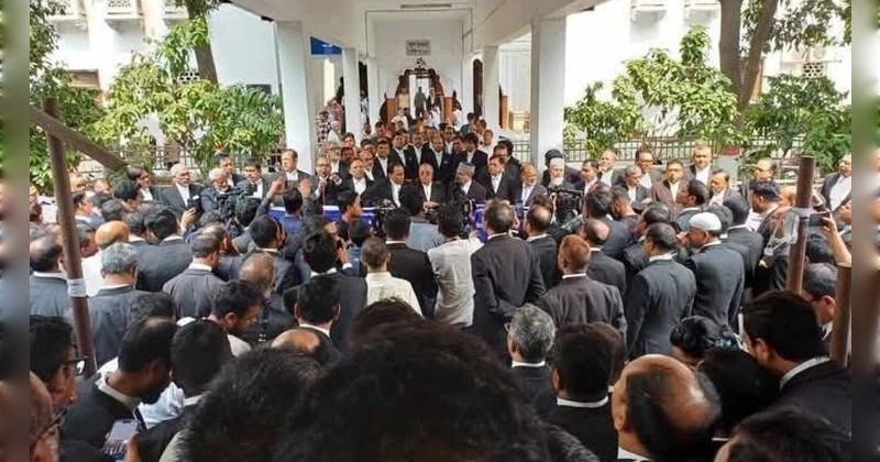 মঙ্গলবার (২৯ এপ্রিল) দুপুরে সুপ্রিম কোর্ট আইনজীবী সমিতি ভবনের সামনে এ বিক্ষোভ সমাবেশ অনুষ্ঠিত হয়। জাতীয়তাবাদী আইনজীবী ফোরাম বিক্ষোভের আয়োজন করে।