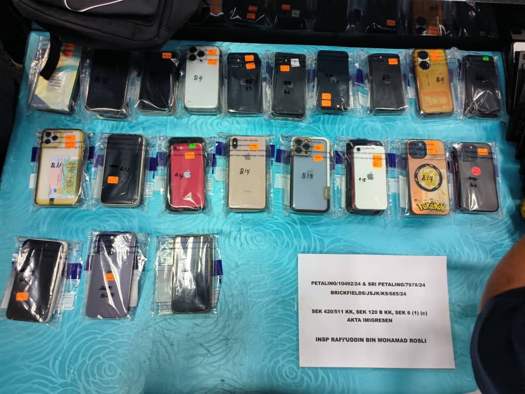 “PDRM turut merampas 17 set komputer, 55 telefon bimbit pelbagai jenama, sebuah router, segugus kunci dan dua buah unit penggera,” katanya.