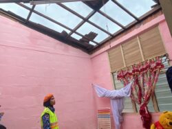 PENDANG: Sebanyak 24 buah rumah di Mukim Air Puteh, di sini rosak selepas sebahagian bumbung rumah mereka diterbangkan angin dalam kejadian ribut petang semalam.