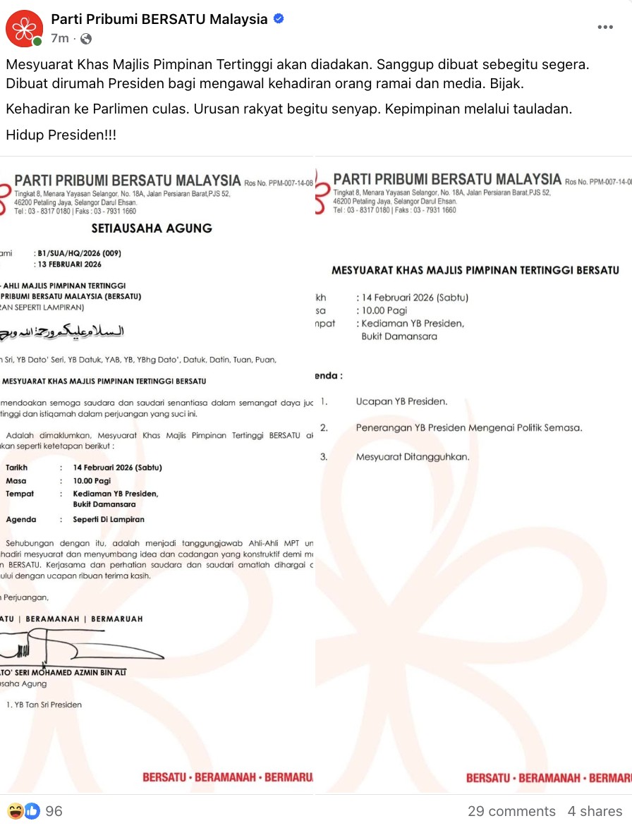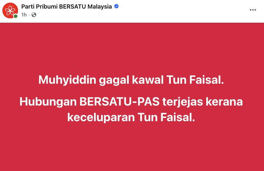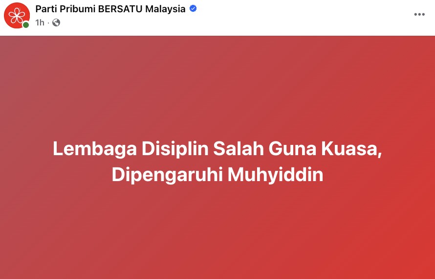 Sumber: Facebook Parti Pribumi BERSATU Malaysia