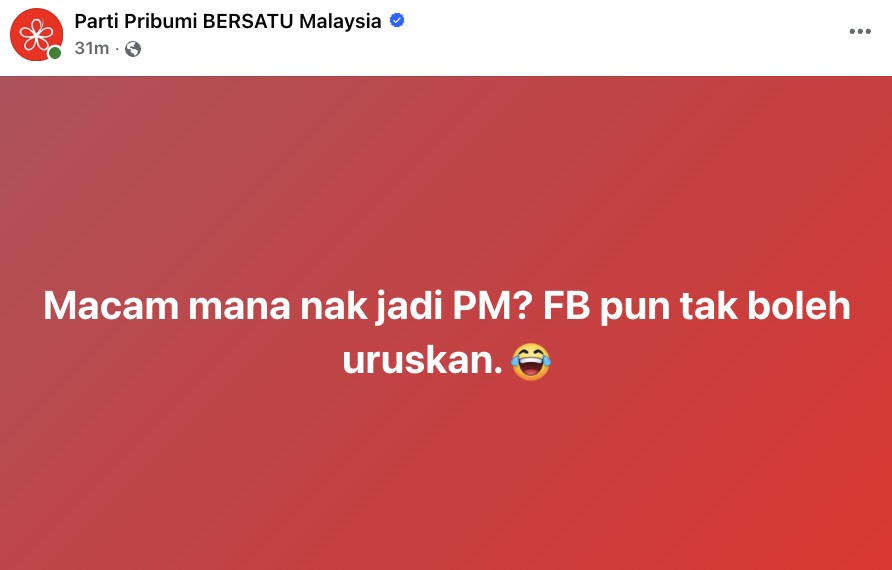 “Kni kita faham mengapa kerajaan tumbang pada 2018.” tulis akaun Facebook parti berkenaan.