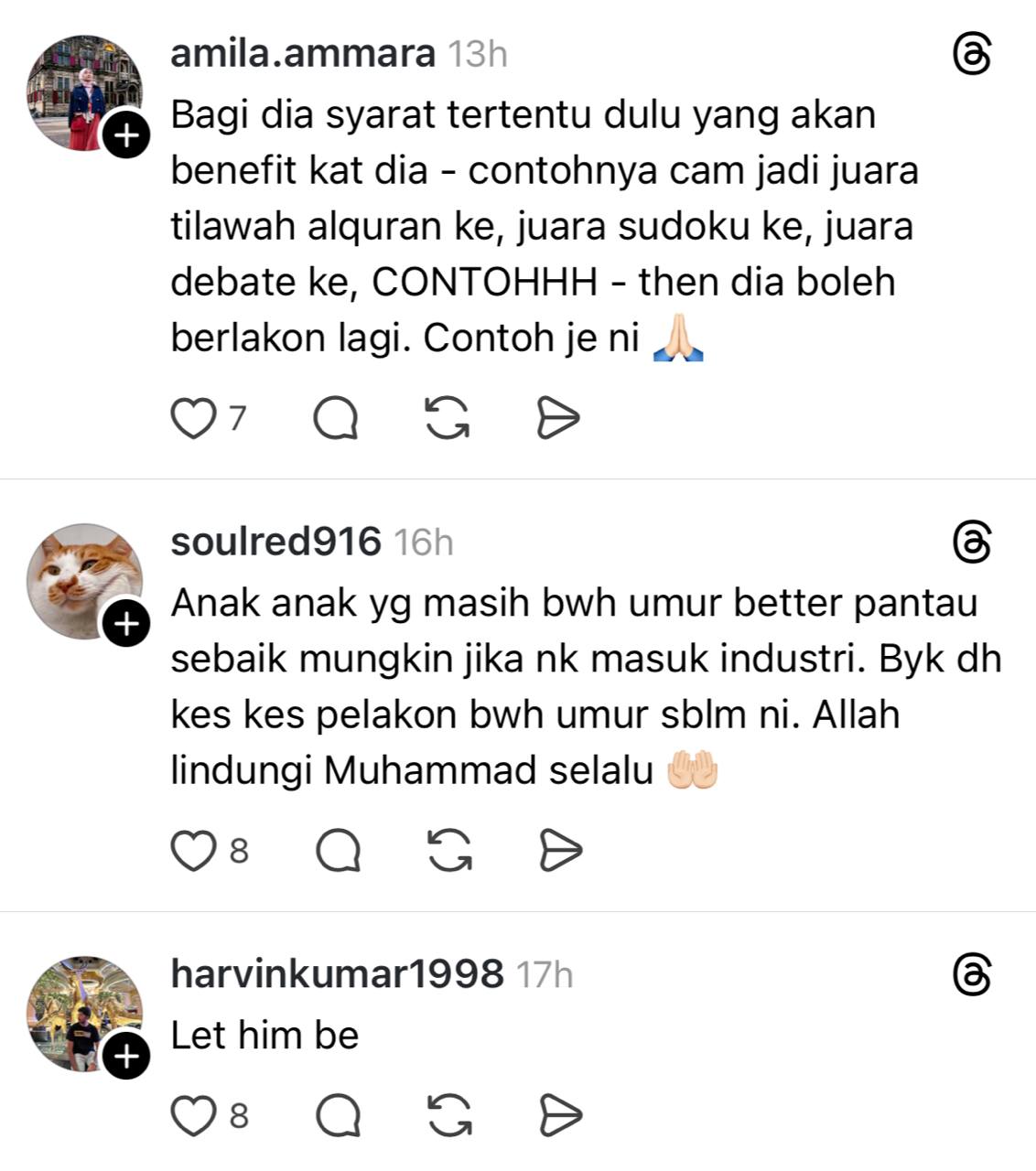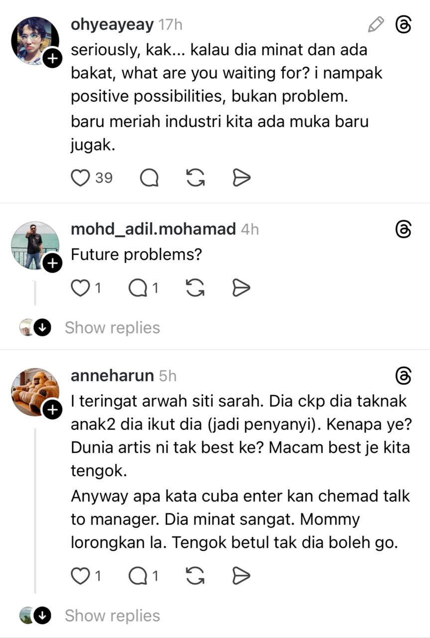 “Anak lelaki saya banyak kali minta berlakon lagi. Last time tu umur 6 tahun. Dia dah mula tunjuk minat nak berlakon. Tapi aku taknak bagi