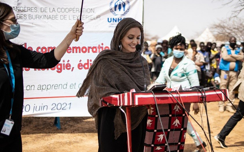 “Saya terharu dengan kasih sayang yang ditunjukkan oleh mereka yang saya temui di Burkina Faso. Saya di sini untuk menunjukkan solidariti dengan penduduk di sini, yang sentiasa bersedia menerima kehadiran saudara mereka yang terpaksa menjadi pelarian disebabkan keganasan atau serangan di tempat asal mereka,” kata Jolie.
