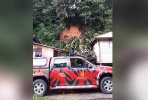 Sebahagian daripada beberapa rumah Orang Asli di Kampung Kerawat, Simpang Pulai di sini tertimbus akibat kejadian tanah runtuh petang tadi.