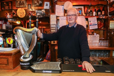 In 1971 he bought the pub, whose walls are adorned with photos of regulars and Gaelic football and hurling teams, and the entrance is topped by lucky horseshoes.