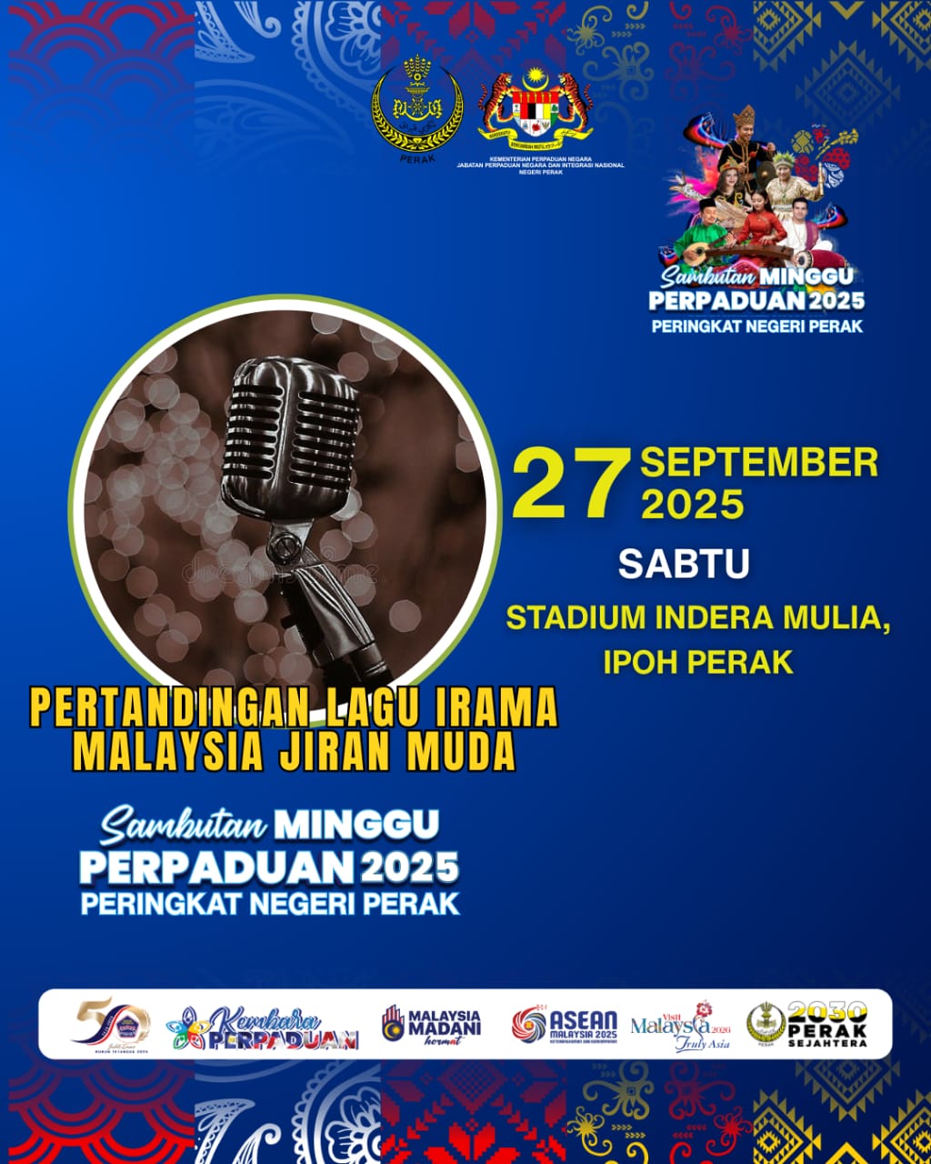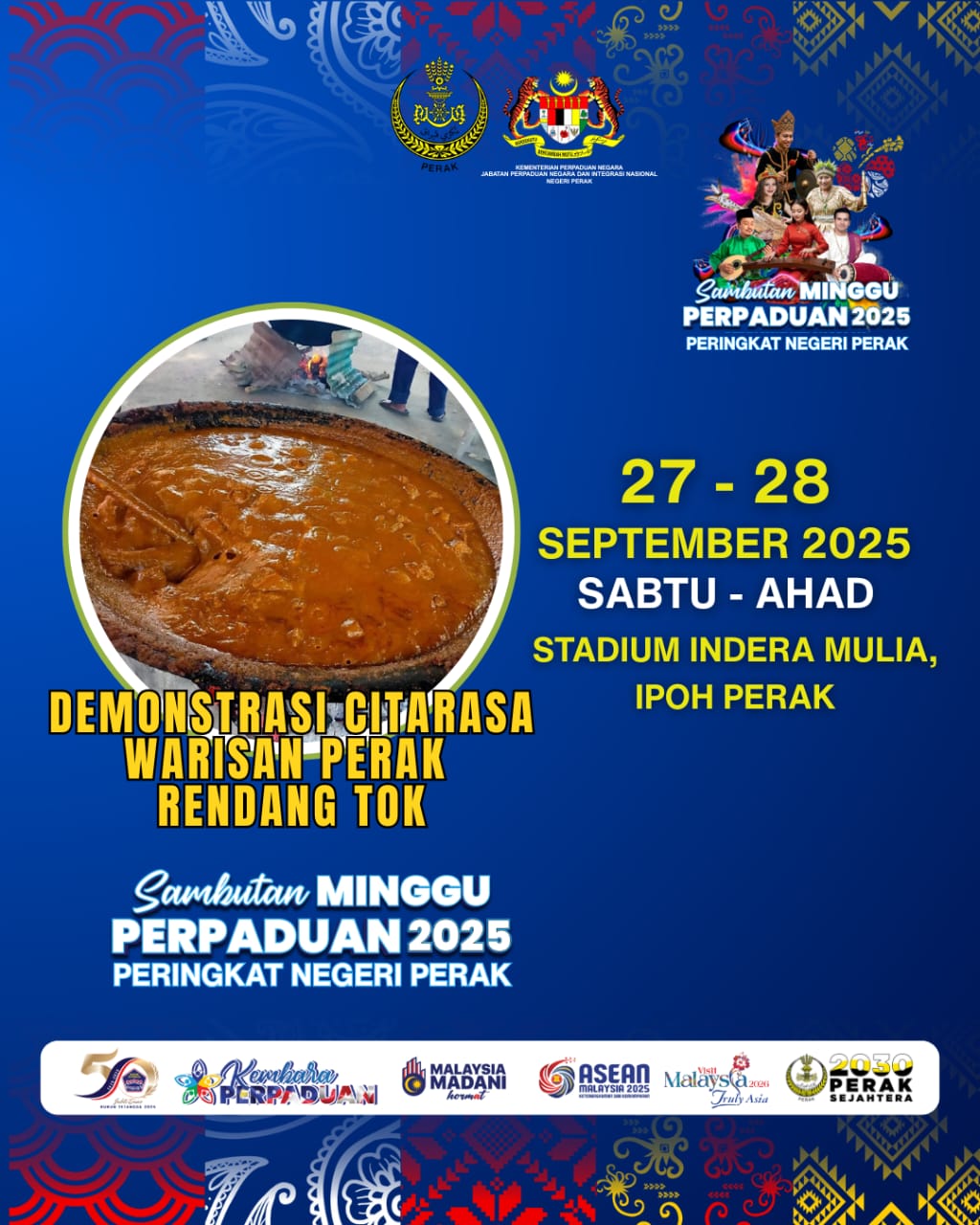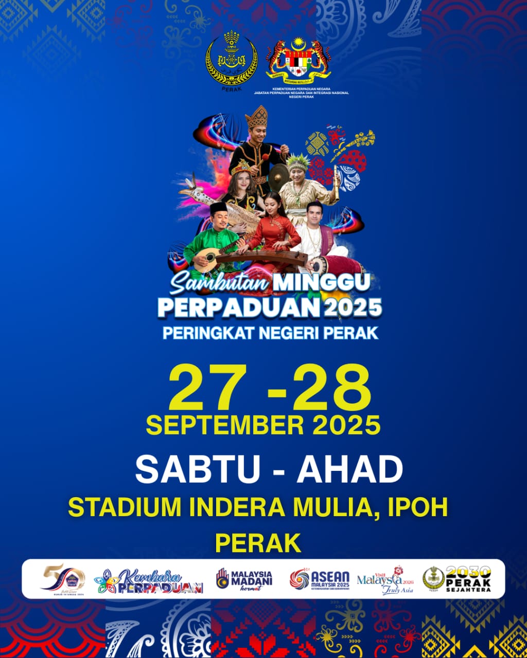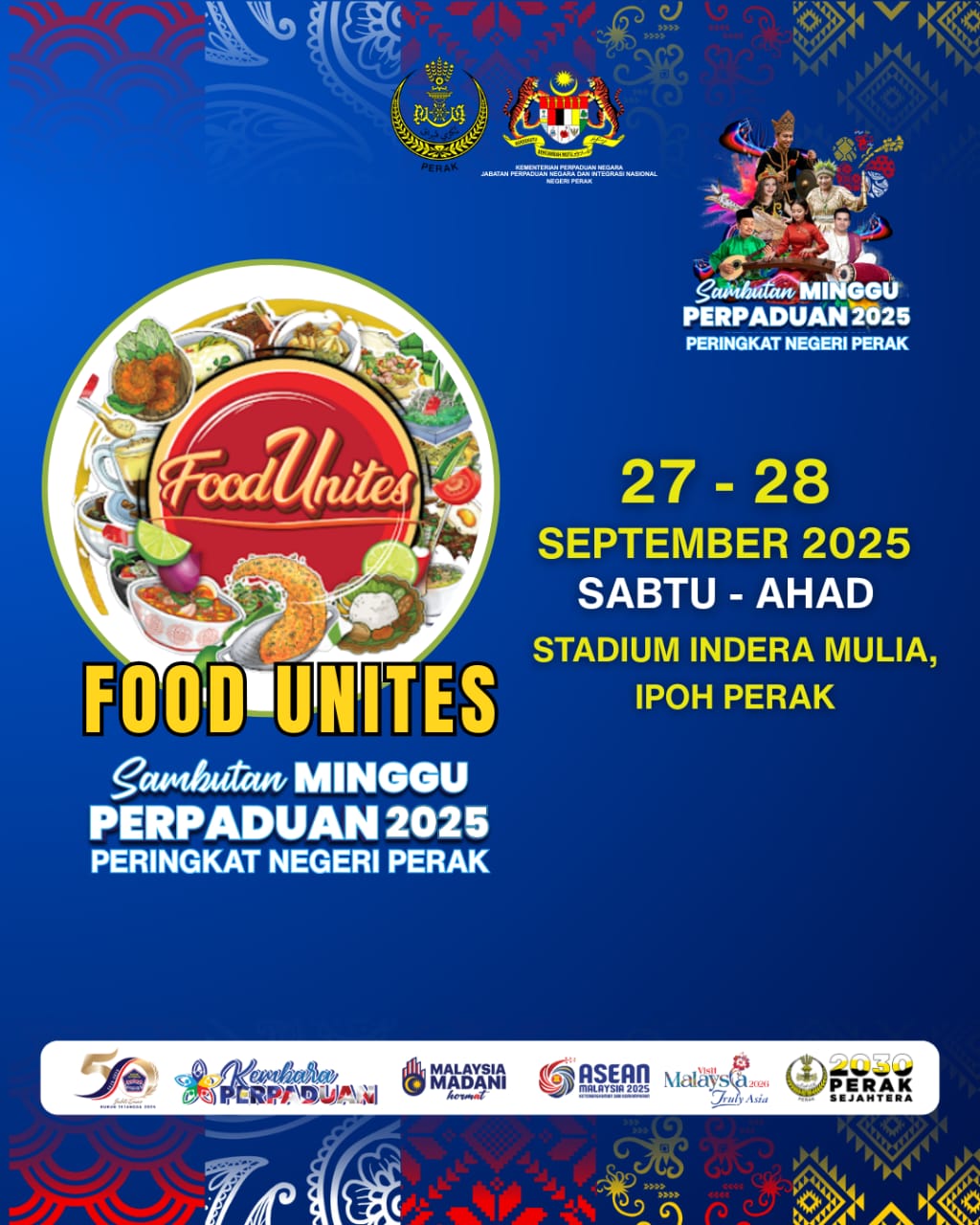 Ipoh bakal jadi lokasi paling meriah hujung minggu ini! Pada 27 dan 28 September 2025, Stadium Indera Mulia, Ipoh akan bertukar wajah jadi pusat perpaduan rakyat apabila Sambutan Minggu Perpaduan 2025 Peringkat Negeri Perak berlangsung dengan penuh warna-warni.
