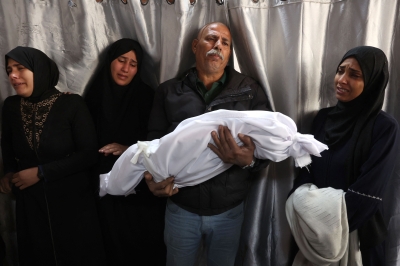 Palestinians mourn as they hold the body of a relative, killed in an Israeli strike, at Al-Ahli Arab hospital, also known as the Baptist hospital, in Gaza City on November 27, 2024, amid the ongoing war in the Palestinian territory between Israel and Hamas. –– AFP pic