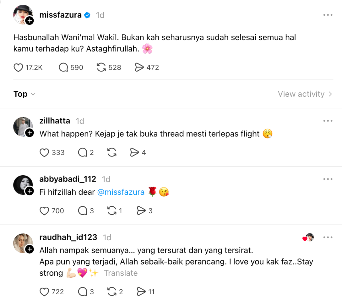 “Hasbunallah wanikmal wakil. Bukan kah seharusnya sudah selesai semua hal kamu terhadap ku? Astagfirullah,” tulisnya.