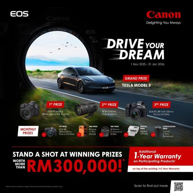 Baru-baru ni Canon Malaysia melancarkan kempen ‘Drive Your Dream’, yang bukan saja menawarkan lanjutan jaminan, tapi juga peluang untuk korang memenangi hadiah-hadiah lumayan. Seriuslah?!