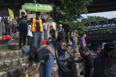 Volunteer Sushmitaa Dhevii Manoharan, 25, from Cheras and her mother joined the morning clean-up team by the riverbank on Friday and spent around two hours cleaning up the area.