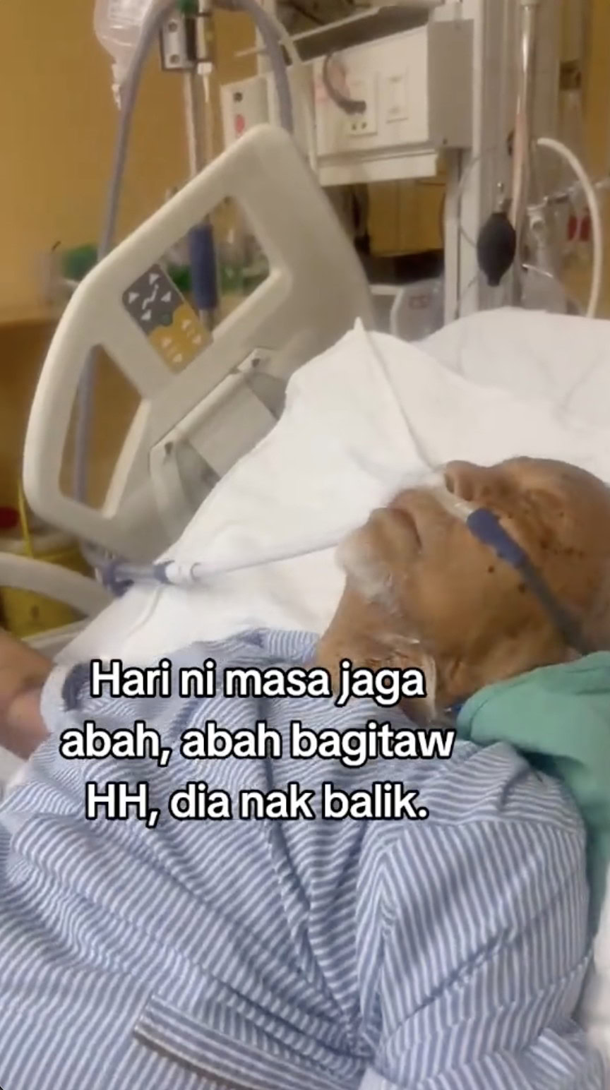 Dalam satu lagi video yang dimuat naik di akaun TikTok sama, Husna memaparkan keadaan Hashim, 87, yang sebelum ini menerima rawatan di Hospital Tuanku Fauziah sebelum dipindahkan ke Hospital Pulau Pinang bagi menjalani rawatan lanjut.