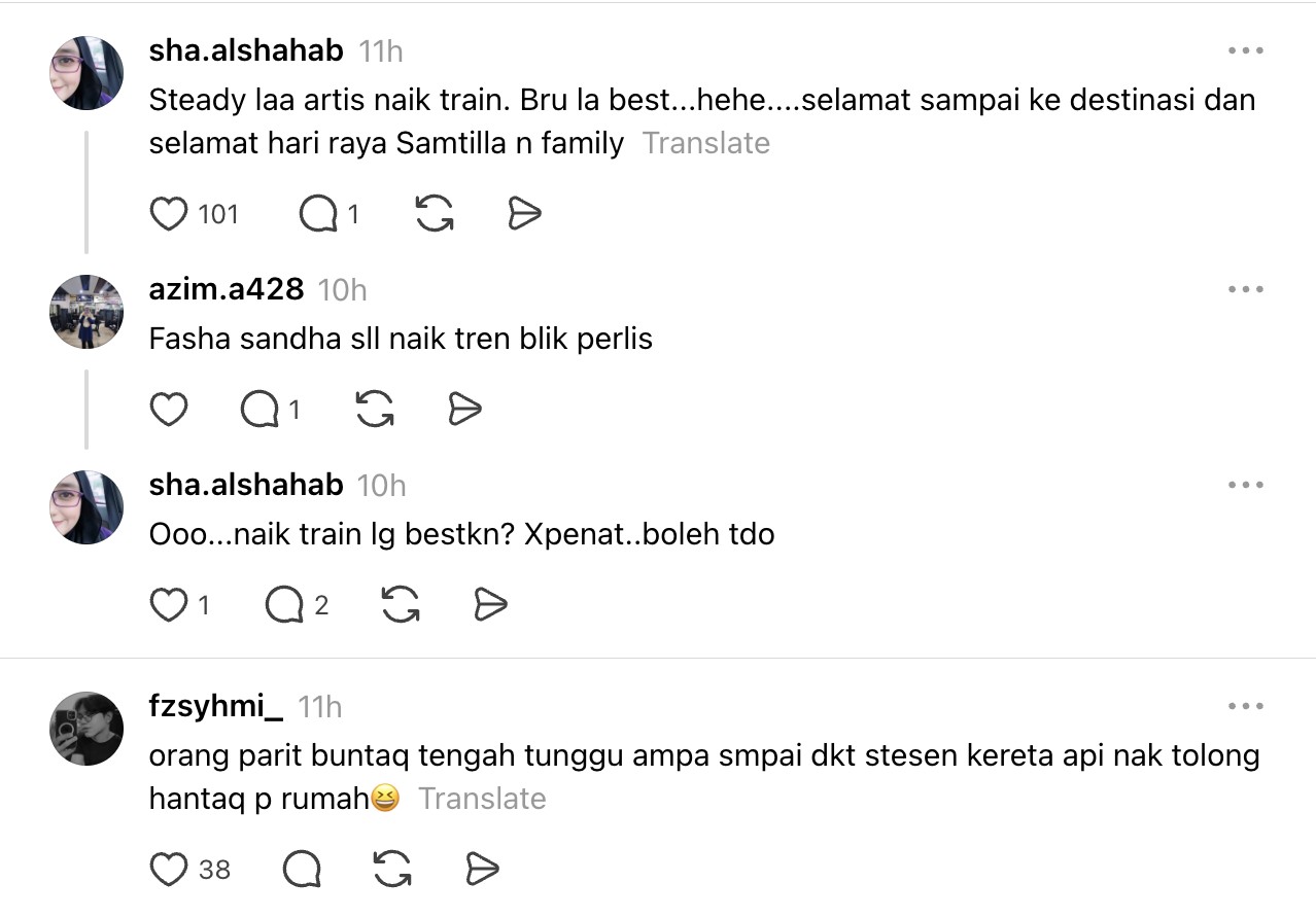 Meninjau ke ruangan komen, warganet memuji sikap pelakon itu yang dikatakan sangat merendah diri kerana memilih pengangkutan awam berbanding pulang ke kampung halaman menaiki kenderaan mewah.