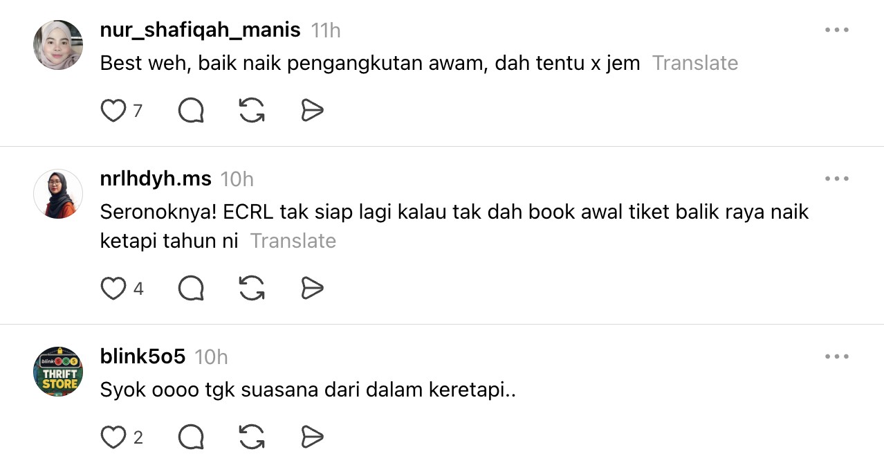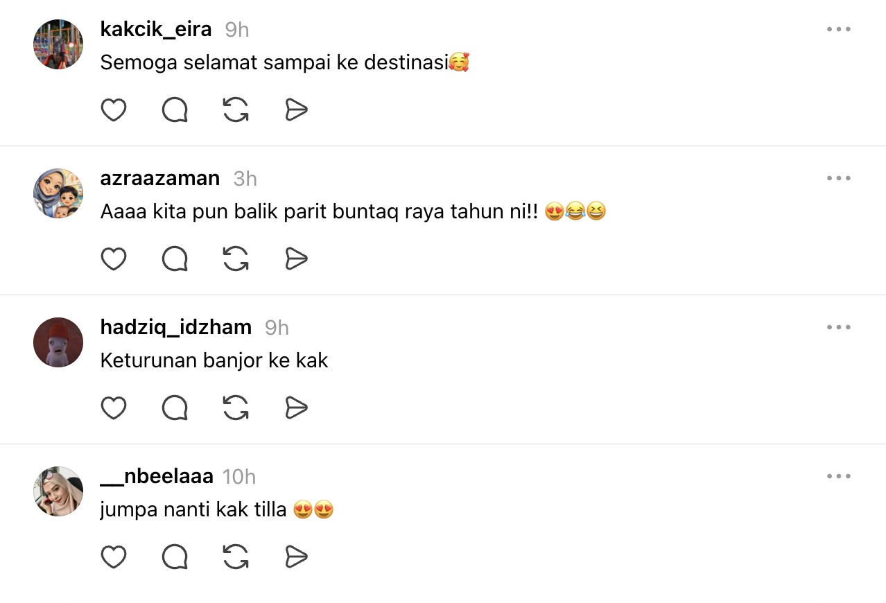 Menerusi perkongsian di Threads, pemilik nama Siti Nur Syatilla Amirol Melvin memberitahu perayaan kali ini dia bersama keluarga memilih pengangkutan awam untuk perjalanan pulang ke kampung di Parit Buntar.