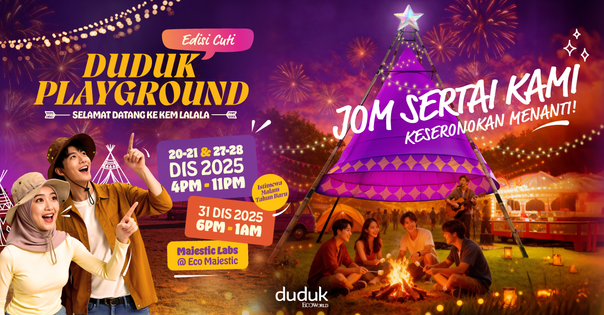 Hujung tahun ni nampaknya korang tak perlu ke pantai atau naik gunung semata-mata nak cari vibe percutian yang chill. Ada satu festival yang bawakan suasana camping, makanan best, dan countdown tahun baru, semuanya dalam satu tempat je, iaitu DUDUK PLAYGROUND Edisi Cuti di Majestic Labs @ Semenyih!