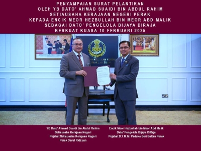 The post also shared an image showing Meor Hezbullah receiving the instrument of appointment from Perak State Secretary Datuk Ahmad Suaidi Abdul Rahim.