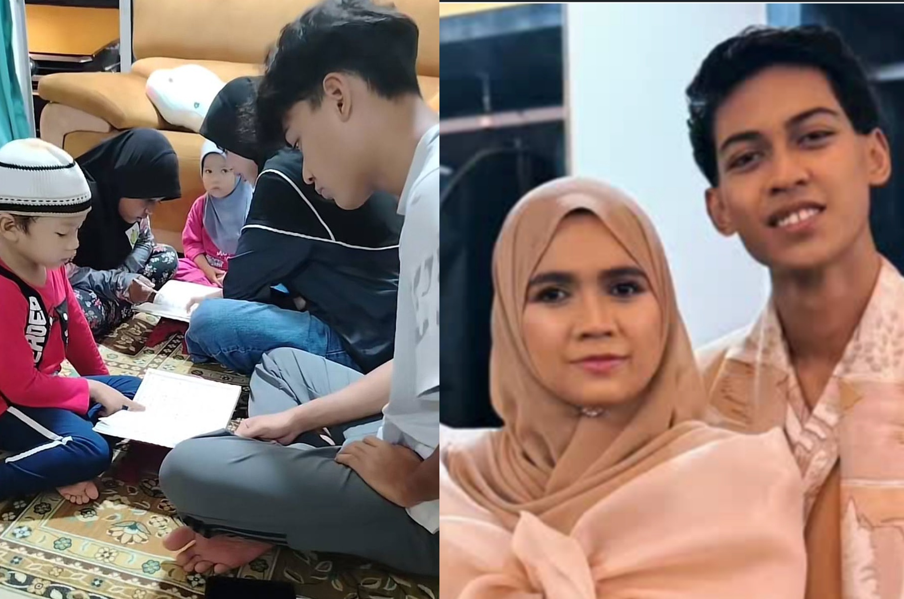 Anak-anak kepada penyanyi kumpulan Inteam, Allahyarham Suhaimi Saad iaitu Hadie Suhaimi dan adiknya, Pyrosh Edfadwah membimbing kanak-kanak mengaji menjadi perhatian.