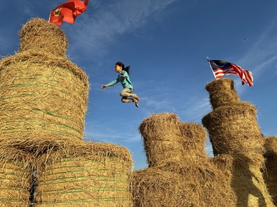 “..to prepare this area of straw bales, it cost us about RM500 and we shared the cost with the youth in this village. After three weeks of this area being opened, many visitors have come to take pictures of the straw bales as well as to see colourful kites dancing in the sky,” he said.