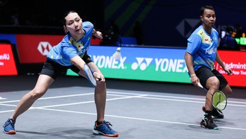 Ganda campuran Indonesia, Rehan Naufal Kusharjanto/Gloria Emanuelle Widjaja harus menerima kenyataan tersingkir All England 2025. Gloria bahkan tak kuasa menahan air mata.