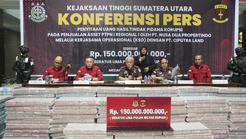 Tim Penyidik Bidang Pidana Khusus Kejaksaan Tinggi (Kejati) Sumatera Utara (Sumut) menerima pengembalian kerugian keuangan negara dari PT Deli Megapolitan Kawasan Residensial (DMKR) dengan nilai total Rp150 miliar.
