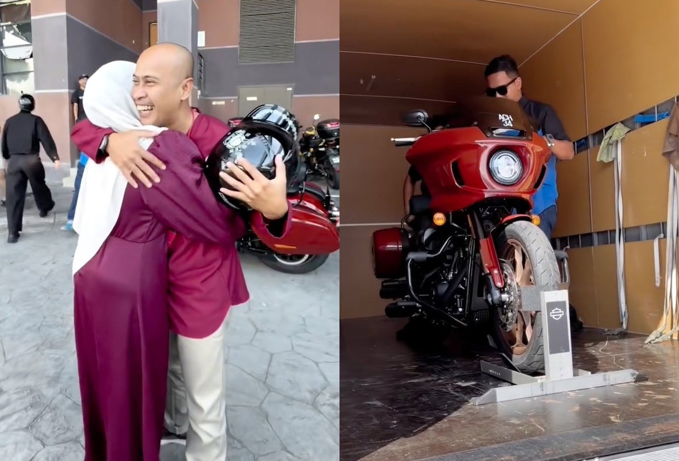 Isteri kepada pelawak Achey iaitu Anne membuat kejutan menghadiahkan sebuah motosikal mewah, Harley Davidson buat suaminya.