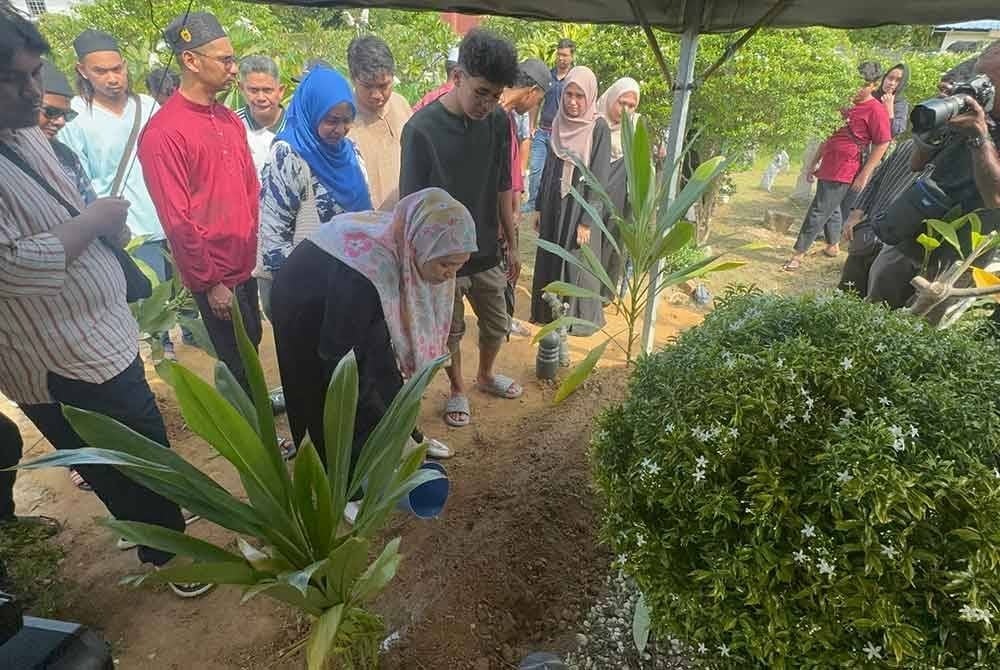 Jenazah Allahyarham dikebumikan di Tanah Perkuburan Islam Masjid Ridwaniah Sungai Batu, Teluk Kumbar di sini kira-kira jam 4 petang pada Ahad.