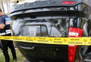 After being robbed at a petrol station in Lukut today, a jewellery shop owner pursued the armed robbers in a car chase, causing a vehicle carrying two suspects to crash.