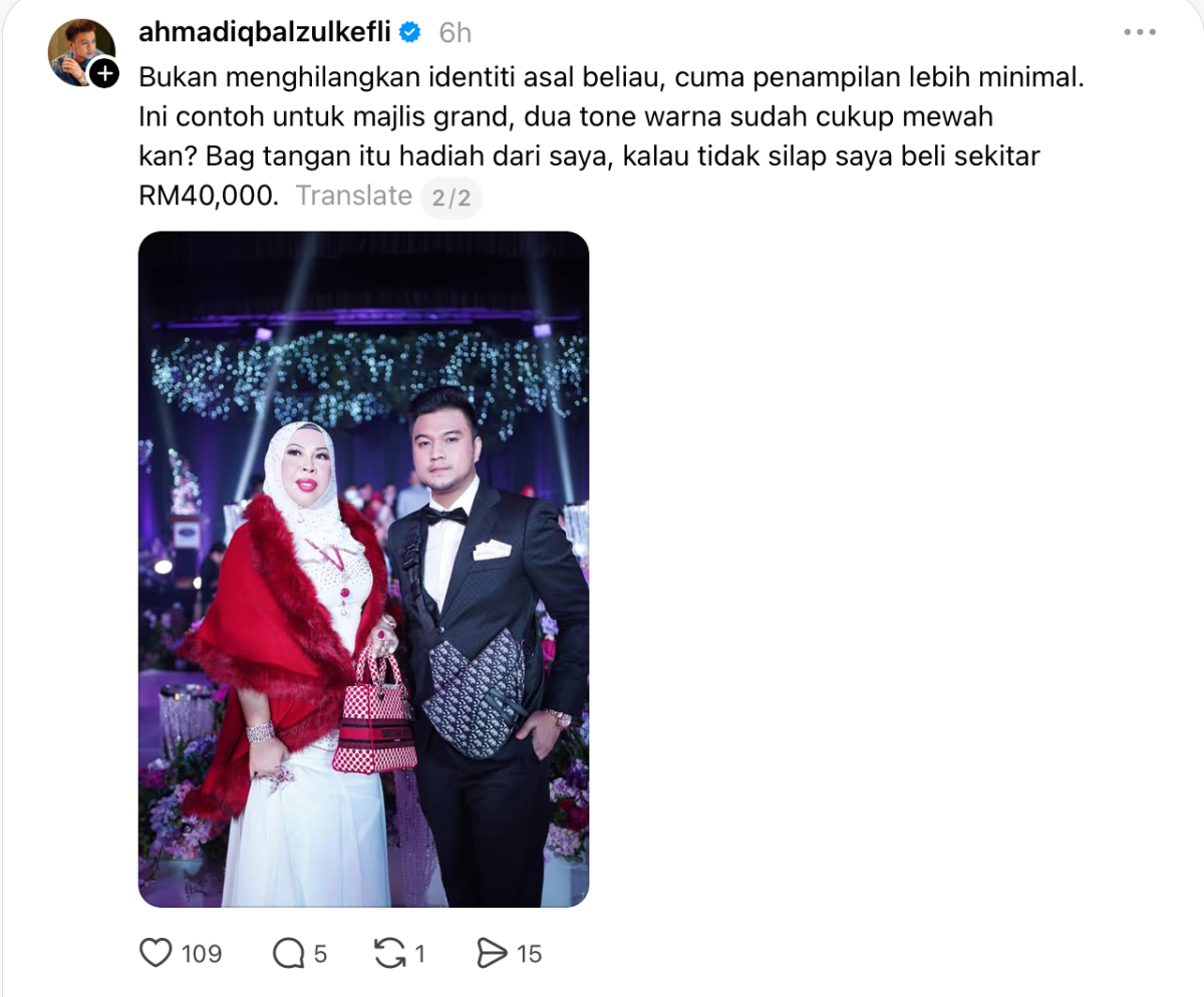 Sementara itu, Iqbal berkata dia mahu mengembalikan penampilan Vida sama seperti ketika dia menjadi pembantu peribadinya yang dilihat lebih minimal namun tetap mewah.