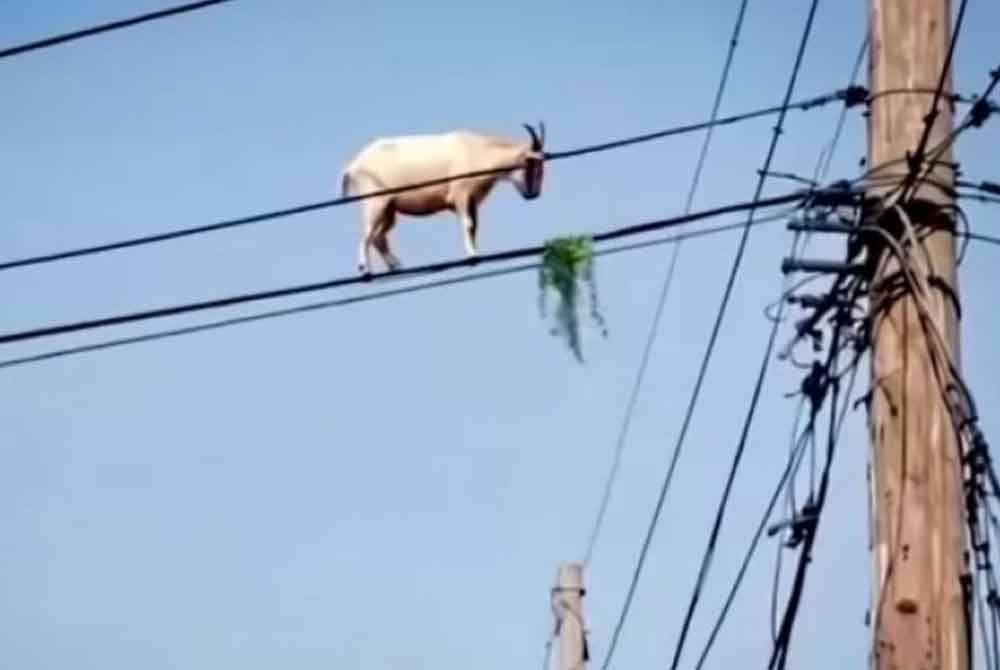 Menurut laporan, video itu turut memperlihatkan tiang elektrik bersaiz besar berhampiran kabel, namun tidak dapat dipastikan sama ada ia digunakan kambing berkenaan untuk memanjat.