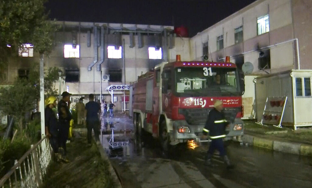 Kebakaran yang berlaku di wad yang mampu menempatkan 60 pesakit di Hospital Al-Hussein di bandar Nasiriyah, Iraq ini adalah kejadian kedua sepertinya dalam tempoh tiga bulan.