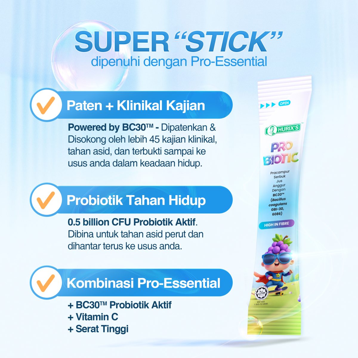 Dapatkan HURIX’S Probiotic sekarang untuk anak anda di Shopee, Lazada, TikTok Shop dan farmasi terdekat.