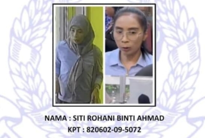 Wan Mohd Zahari urge the public to provide any information related to the wanted woman to Inspector Nor Baizura Mohd Nasir at 014-2116539 or to the Kuantan district police headquarters at 09-5652222.
