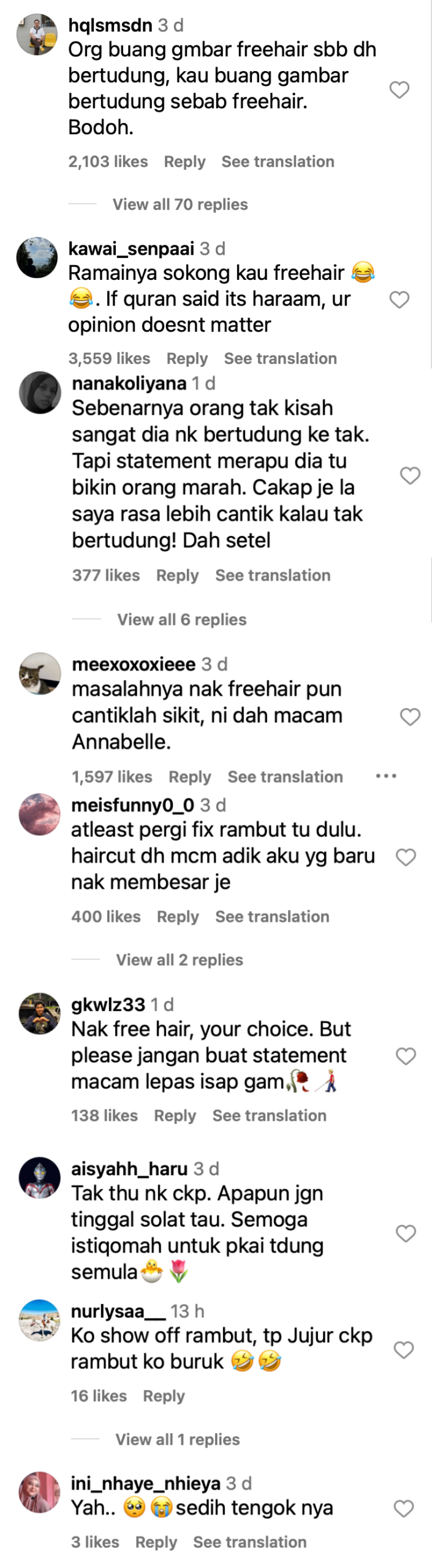Diruangan komen rata-rata netizen meluahkan rasa kecewa lebih-lebih lagi dengan kenyataannya sebelum ini apatah lagi menutup aurat itu adalah wajib.