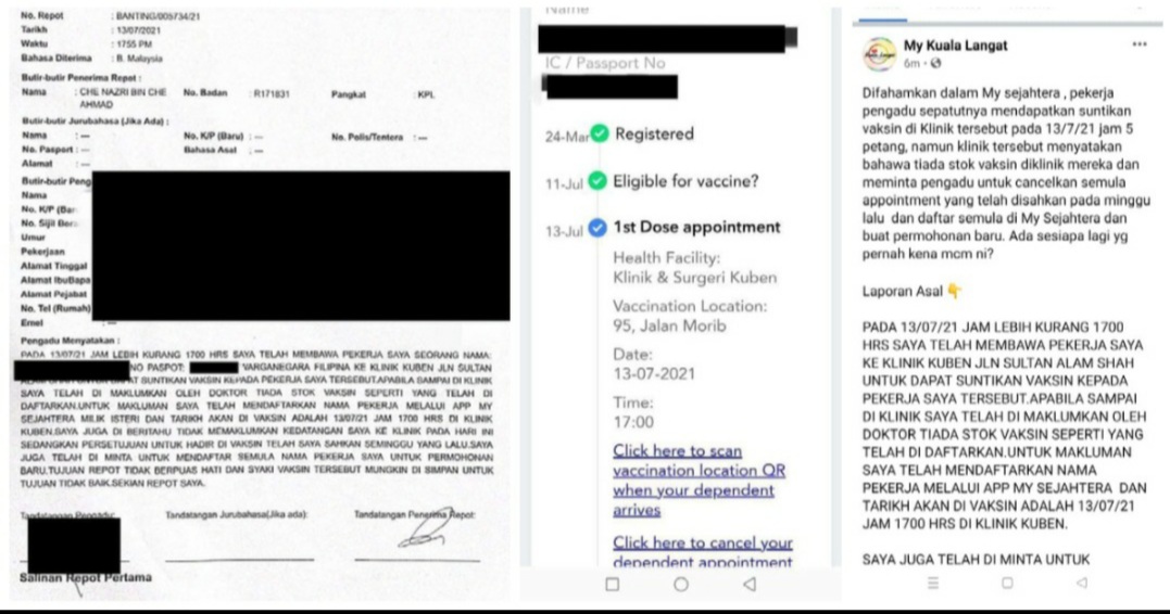 Individu terbabit yang mendaftarkan penerimaan vaksin buat pekerjanya yang merupakan warganegara Filipina mendakwa, dia ke klinik itu pada pukul 5 petang selepas mendapati waktu janji temu pemberian vaksin tertera dalam MySejahtera tersebut.