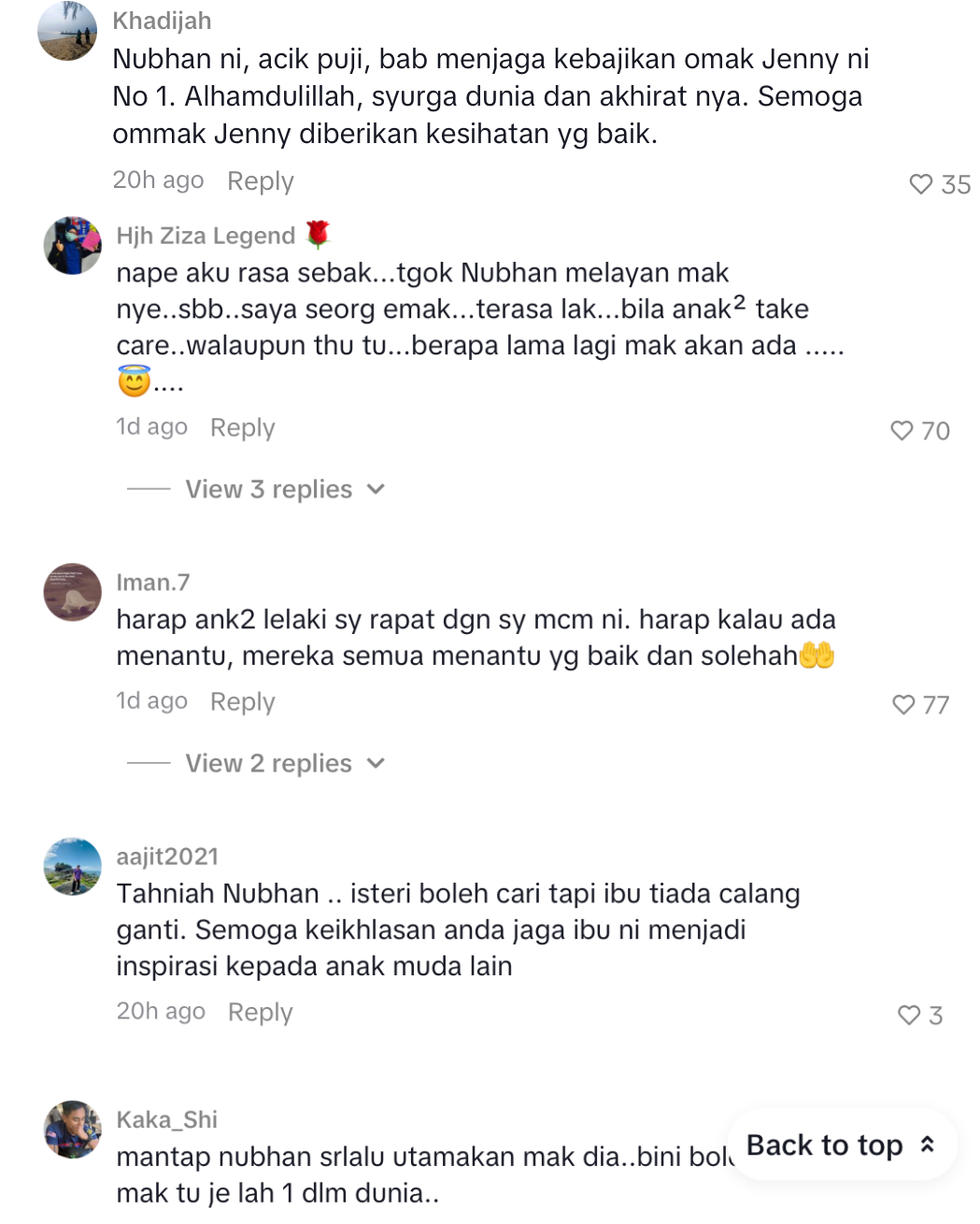 Perkongsian Nubhan itu mendapat pelbagai reaksi daripada netizen yang memuji sikap penyayang dan tangungjawabnya sebagai seorang anak.