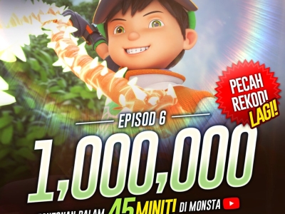 This is after the finale episode for the first arc of its second season, BoBoiBoy Galaxy Sori, which premiered on Youtube yesterday notched up a whopping one million views within just 45 minutes.