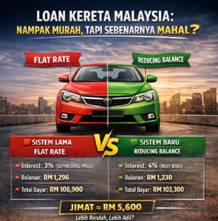 Perbezaan antara kedua-dua sistem ini bukan sekadar kecil, malah boleh mencecah sekitar RM5,600 dalam penjimatan sepanjang tempoh pinjaman. Jumlah ini bukan sahaja signifikan, malah boleh digunakan untuk menampung beberapa bulan bayaran ansuran, kos penyelenggaraan, atau insurans kenderaan.