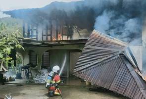nenek berusia 60 tahun bersama cucunya tinggal sehelai sepinggang apabila rumah mereka musnah dalam kebakaran di Kampung Perana, Jalan Padang Mat Sirat.