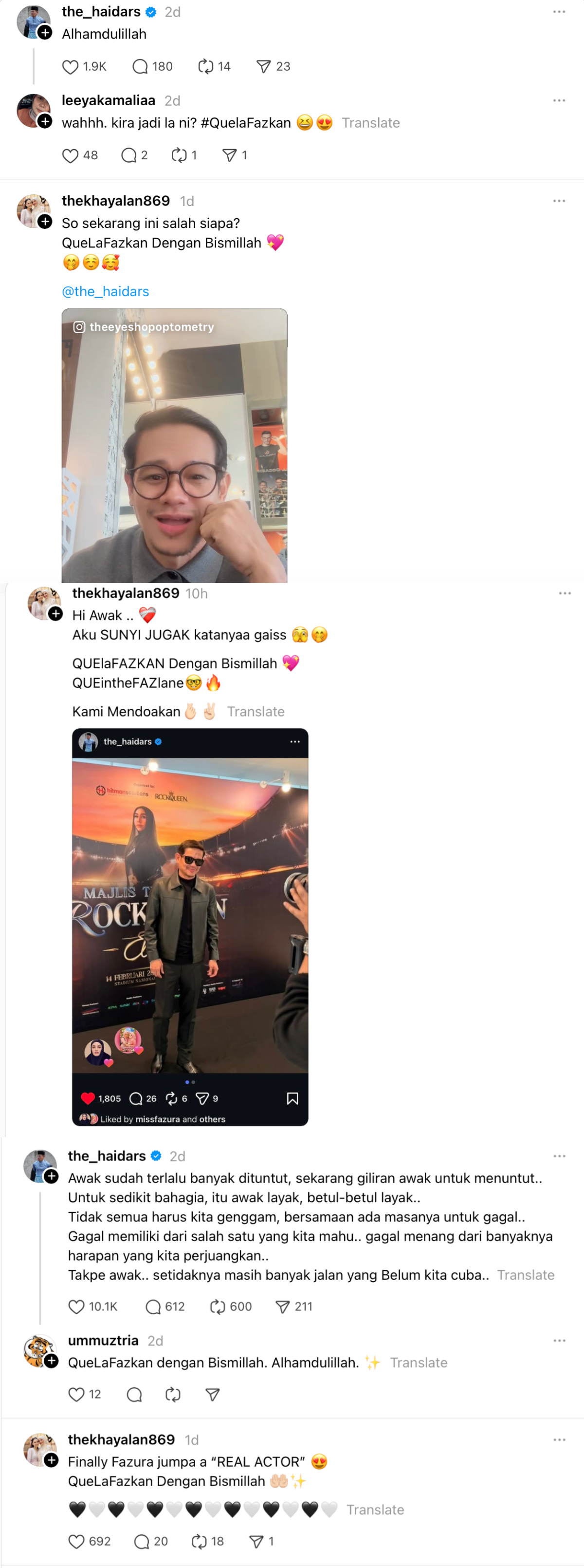 Melihatkan gandingan tersebut, ada netizen yang mula mencipta tanda pagar buat mereka iaitu #QueLaFazkanDenganBismillah.