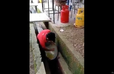 “The roti canai seller here washes the wok using drain water. Very dirty,” the woman is heard saying while recording the incident.