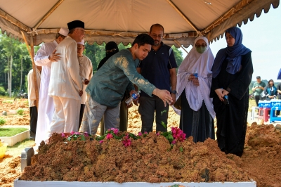 Earlier, his remains were taken to the Kampung Tunku Mosque to be bathed and shrouded, followed by a funeral prayer led by the mosque’s imam Ustaz Ahmad Saad.
