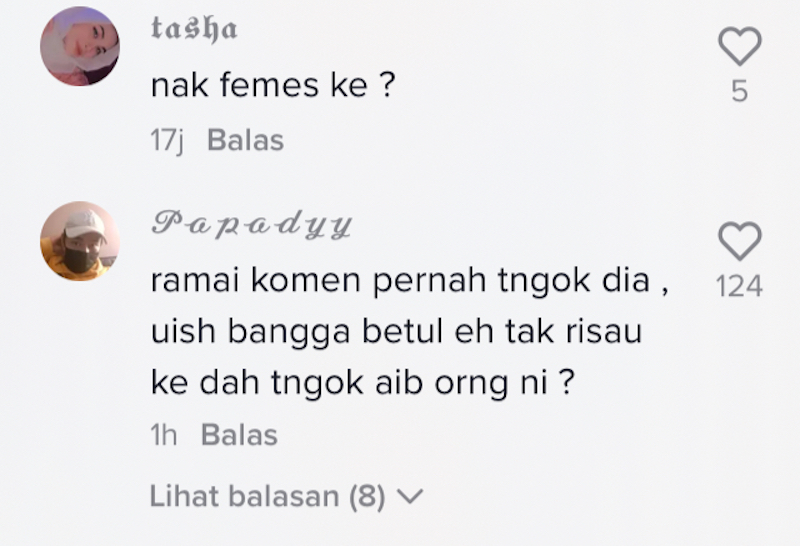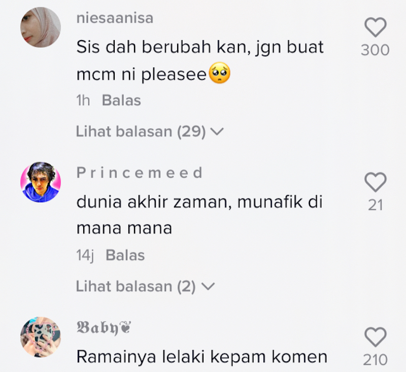 Wanita tersebut dilihat dengan sengaja berlagak seperti ingin membuka jaket yang dipakai setelah ‘terpancing’ dengan komen negatif pengguna TikTok yang lain.