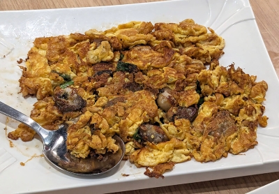 Every bit of egg is browned, every oyster is plump and juicy and they don’t slip out of the omelette like softer, starchier ones often do.