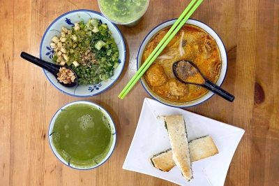 This principle extends to their offering of standard lei cha: beyond the classic carb pairing of white rice, customers may also opt for brown rice, rice vermicelli, pan mee or even spinach noodles.