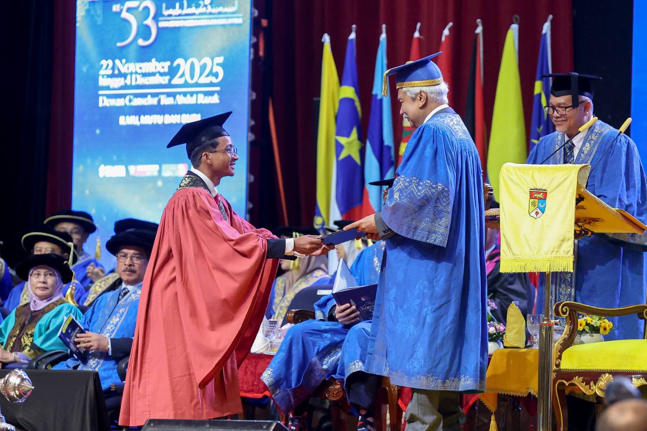 BANGI: Seramai 13,904 graduan diraikan sempena Majlis Konvensyen Universiti Kebangsaan Malaysia (UKM) Ke-53, hari ini. Majlis yang diadakan dalam 20 sidang itu meraikan 571 graduan doktor falsafah, 231 graduan sarjana kepakaran, 2,796 graduan sarjana, 4,511 graduan sarjana muda, 108 graduan diploma pascasiswazah, 5,677 graduan diploma lepasan ijazah dan 10 graduan sijil pascasiswazah. Yang di-Pertuan Besar Negeri Sembilan, Tuanku Muhriz Tuanku Munawir berkenan menyempurnakan majlis untuk berkongsi kejayaan 13,904 graduan UKM…