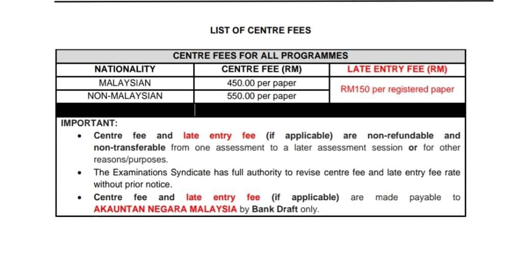 The exam centre fees skyrocketed from RM250 before the pandemic to RM450 afterward, despite the fact that exams are still conducted online. Students are required to use their own laptops physically at the exam centre to complete the online assessment.