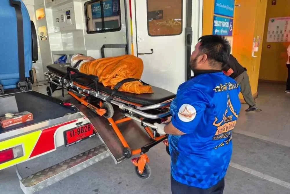 Pasukan penyelamat kecemasan membawa seorang wanita warga emas yang ditemui masih hidup selepas dijadualkan untuk upacara pembakaran mayat di Kuil Wat Rat Prakhong Tham, wilayah Nonthaburi, Thailand. Foto: Kuil Wat Rat Prakhong Tham